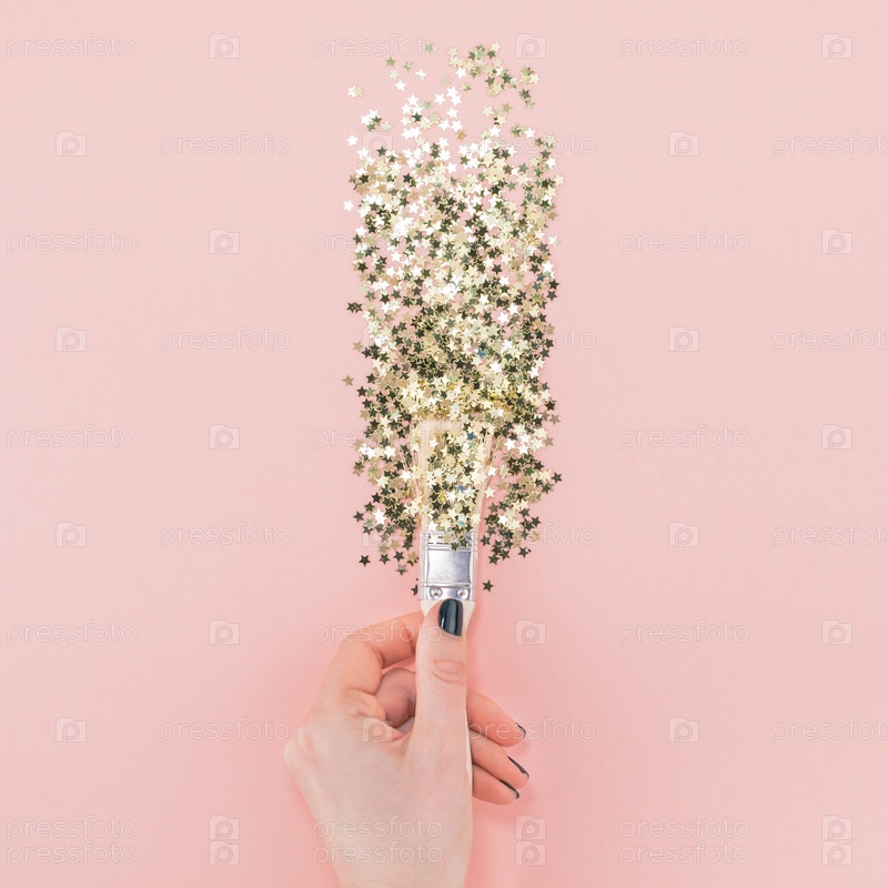 Сюрреалистичная кисть рисует конфетти золотыми звездами
