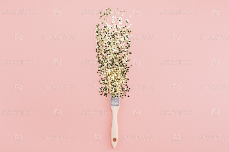 Сюрреалистичная кисть рисует конфетти золотыми звездами