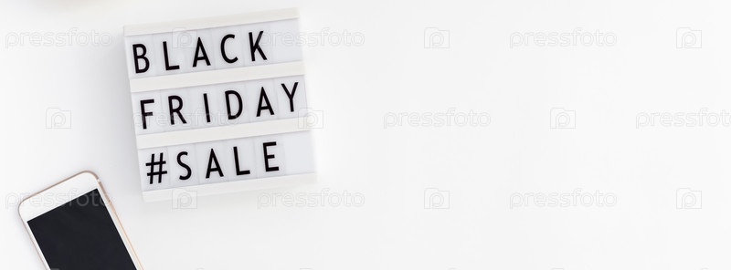Текст распродажи в черную пятницу на белом лайтбоксе