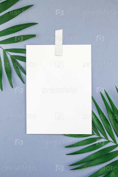 Макет пустой белой открытки тропических пальмовых листьев