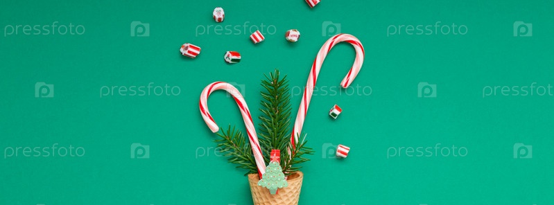 Рождественская открытка с леденцами в вафельном рожке