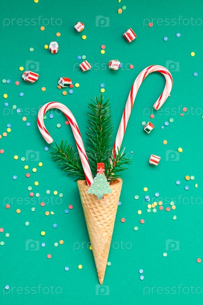 Рождественская открытка с леденцами в вафельном рожке