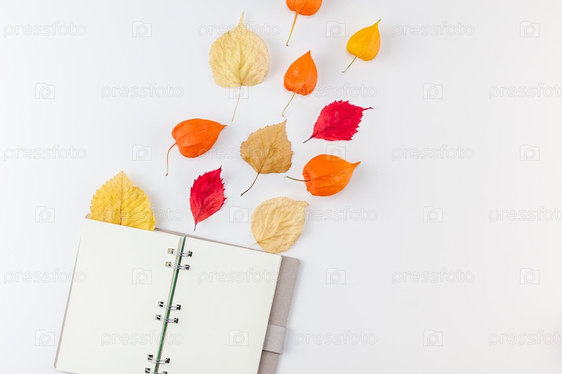 Блокнот с летающими сушеными цветами и листьями