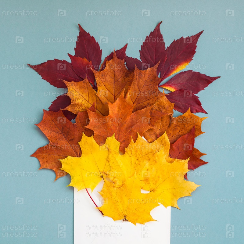 Осенние листья в макете бумажного конверта