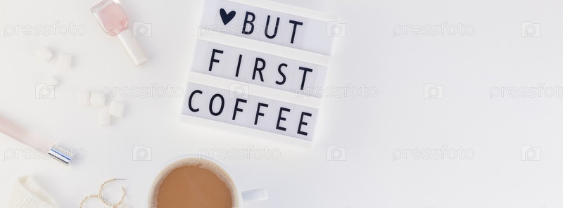 Но первый текст о кофе на лайтбоксе с чашкой кофе