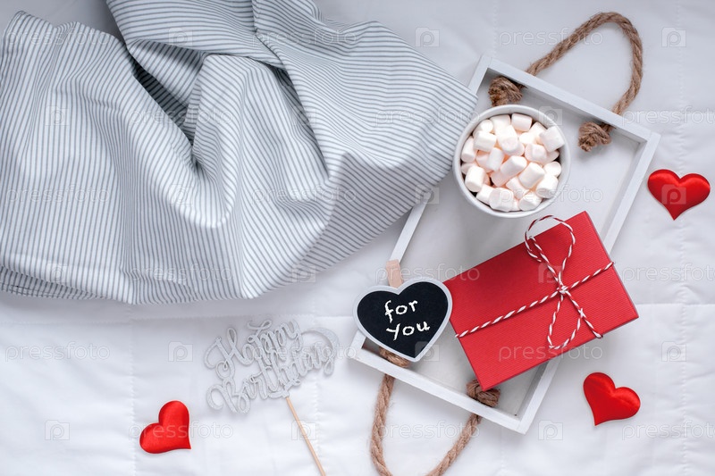 Романтический завтрак в постель. Концепция дня рождения