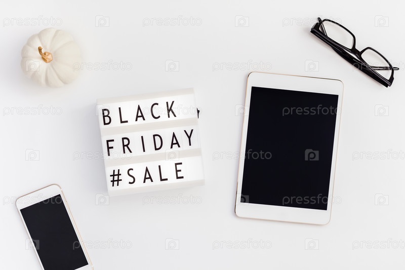 Текст распродажи в черную пятницу на белом лайтбоксе