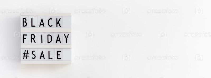 Текст распродажи в черную пятницу на белом лайтбоксе