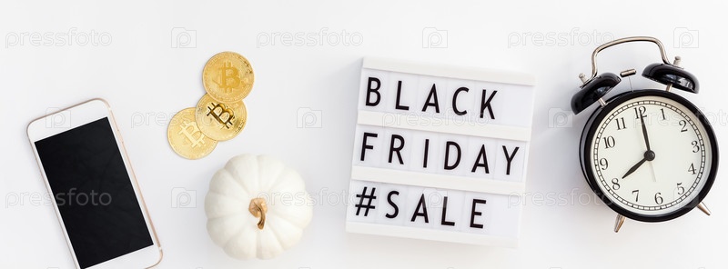 Текст распродажи в черную пятницу на белом лайтбоксе