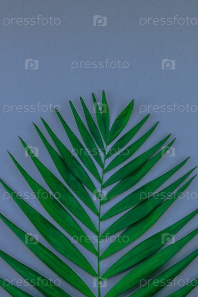 Тропические пальмовые листья на синем фоне серой бумаги