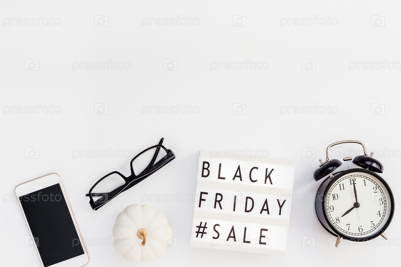 Текст распродажи в черную пятницу на белом лайтбоксе