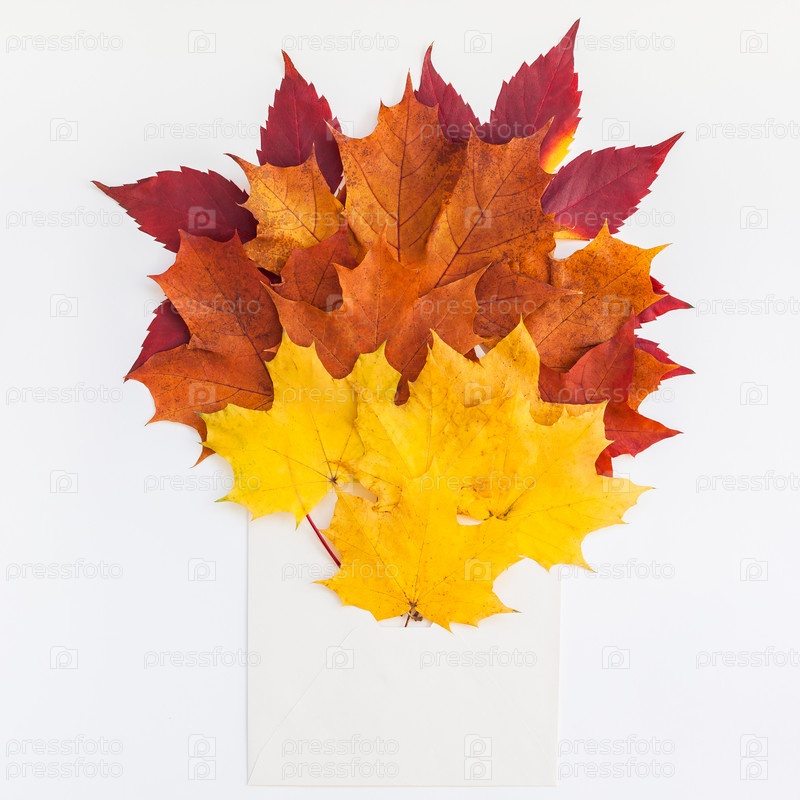 Осенние листья в макете бумажного конверта