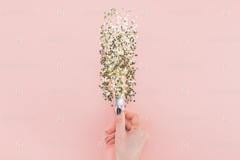 Сюрреалистичная кисть рисует конфетти золотыми звездами