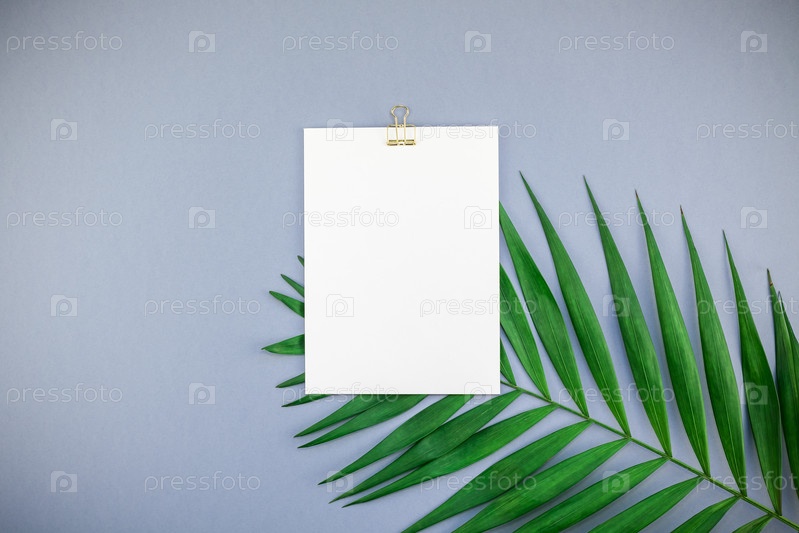 Макет пустой белой открытки тропических пальмовых листьев