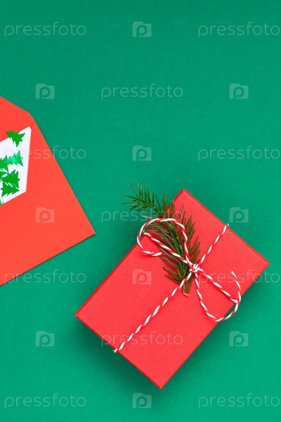 Рождественская открытка с красной подарочной коробкой