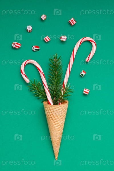 Рождественская открытка с леденцами в вафельном рожке
