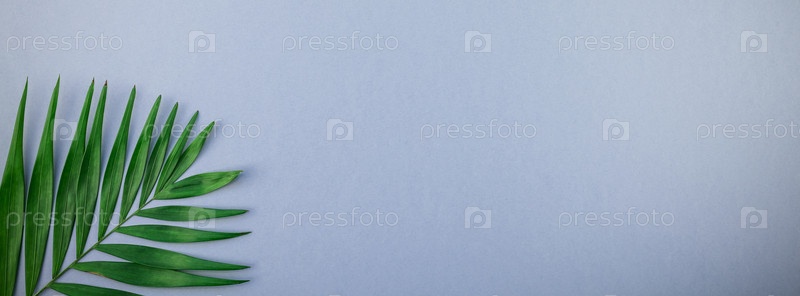 Тропические пальмовые листья на синем фоне серой бумаги