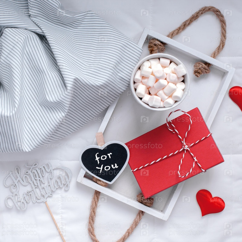 Романтический завтрак в постель. Концепция дня рождения