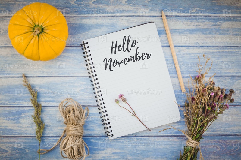 Пустой блокнот с карандашом и осенними тыквами
