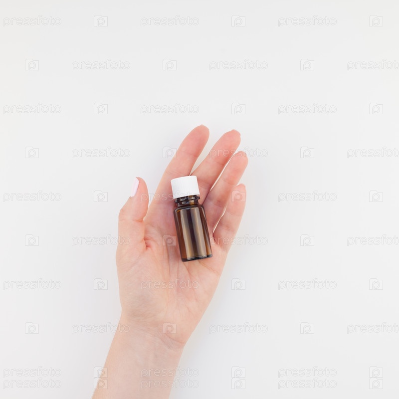 Женская рука с маленькой стеклянной бутылкой изолирована