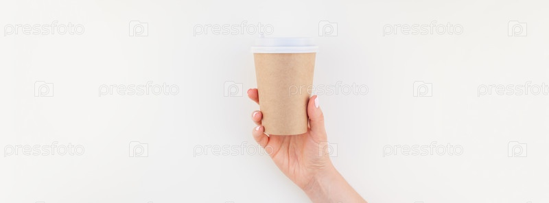 Макет кофейной чашки в женской руке
