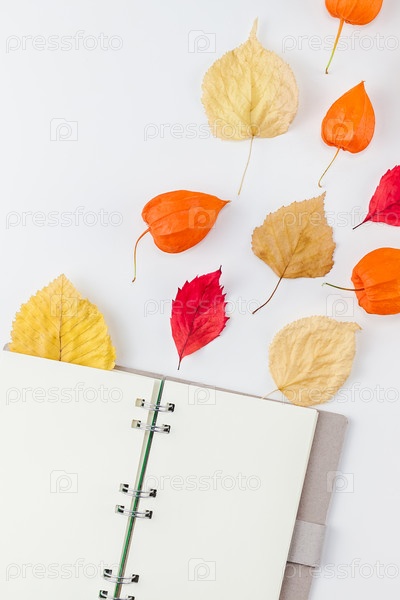 Блокнот с летающими сушеными цветами и листьями