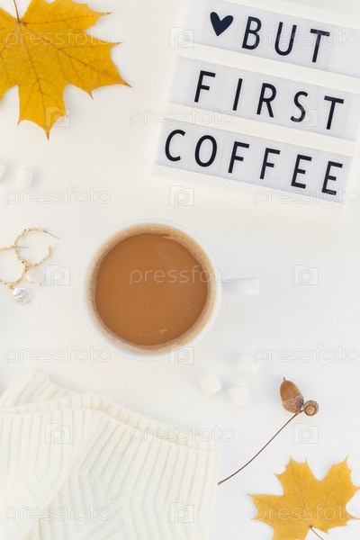 Но первый текст о кофе на лайтбоксе с чашкой кофе