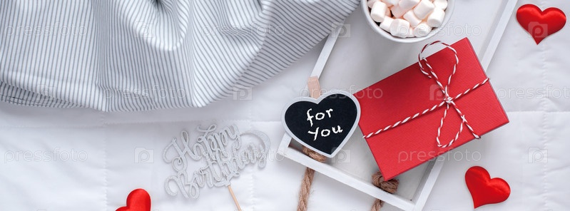 Романтический завтрак в постель. Концепция дня рождения