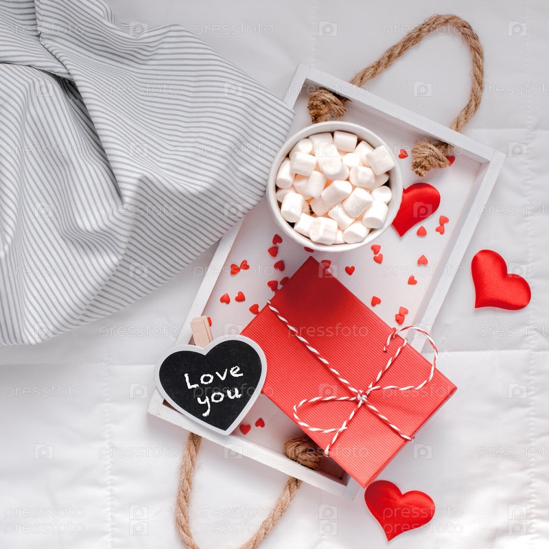Романтический завтрак в постель. Концепция Валентина