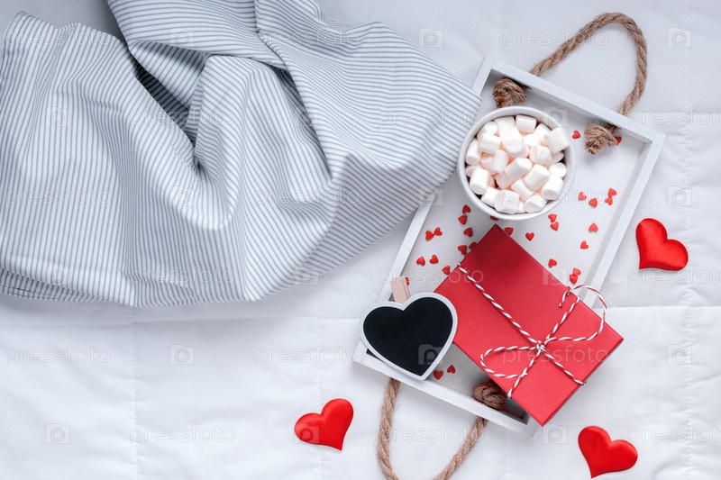 Романтический завтрак в постель. Концепция Валентина