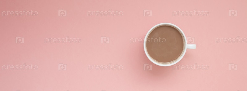 Чашка кофе с молоком на розовом фоне