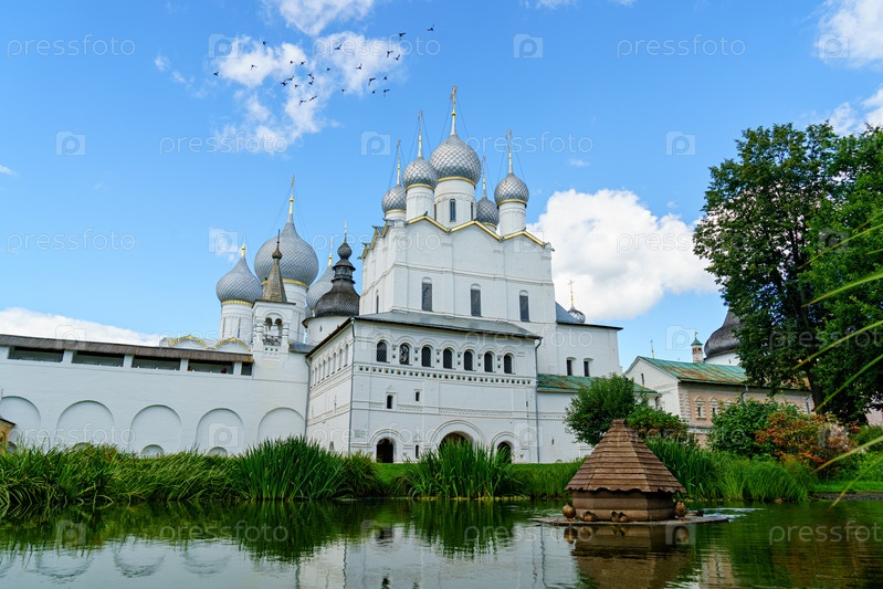 Ростов, Россия. Храм Воскресения Христова в Кремле. Пруд. Ростовский Кремль