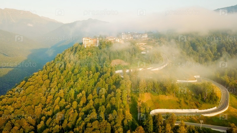 Вид с воздуха. Роза Хутор, Красная Поляна. Сочи, Россия