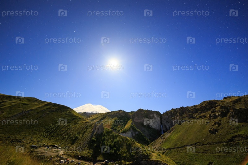 Луна над Эльбрусом. Ночной пейзаж. Россия