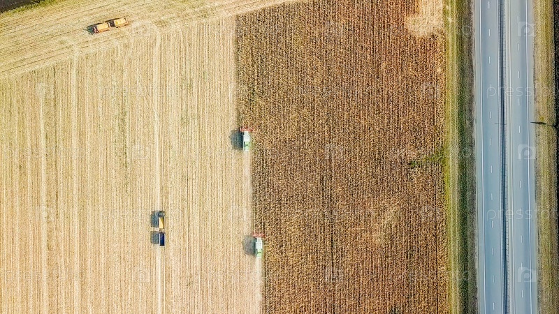 Уборка кукурузы. Комбайн собирает кукурузу с поля. Россия