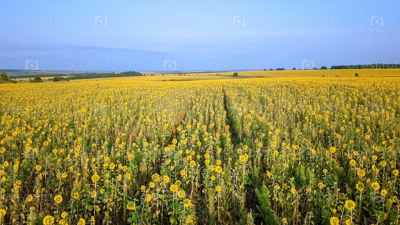 Пролетая над полем подсолнухов. Осень. Россия