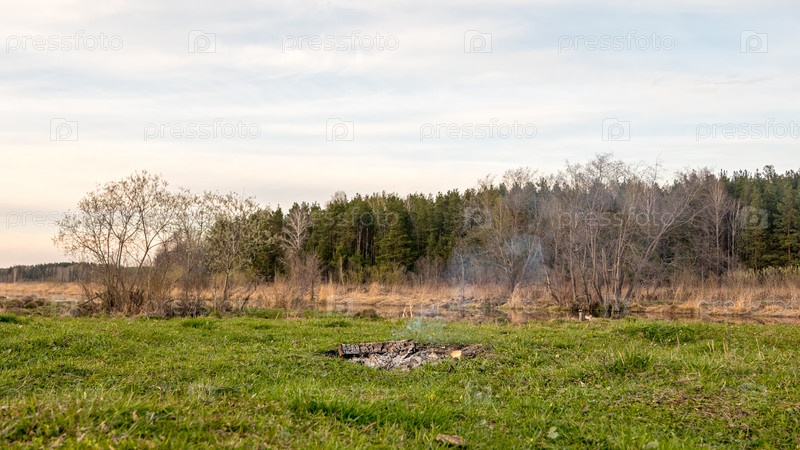 Костер в поле у реки