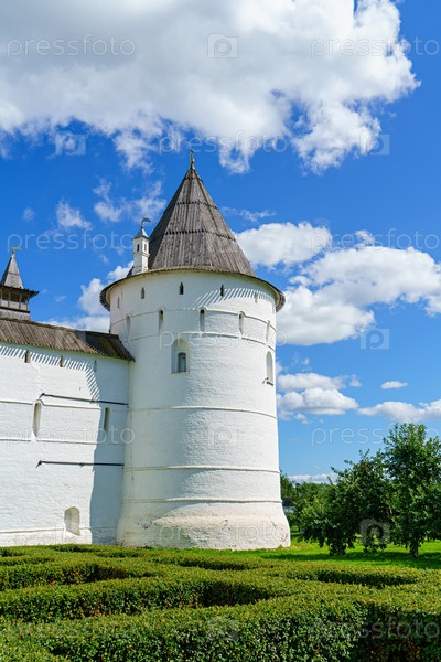 Ростов, Россия. Башня Ростовского кремля в Митрополичьем саду
