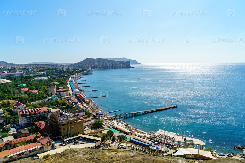 Судак, Крым. Линия пляжей в городе Судак. Судакская бухта