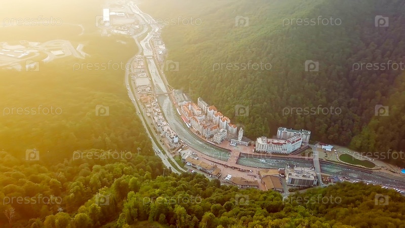 Вид с воздуха. Роза Хутор, Красная Поляна. Сочи, Россия