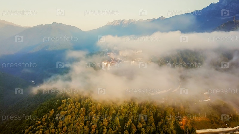 Вид с воздуха. Роза Хутор, Красная Поляна. Сочи, Россия