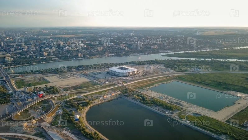 Панорама центральной части Ростова-на-Дону. Стадион, река Дон. Россия, Ростов-на-Дону