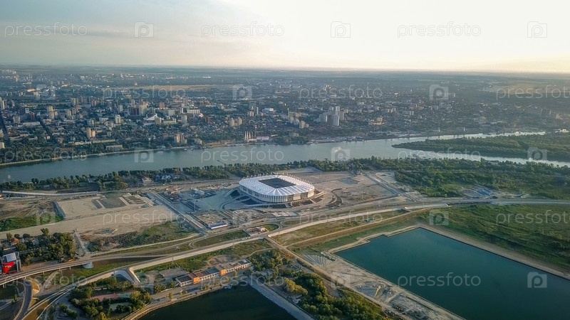 Панорама центральной части Ростова-на-Дону. Стадион, река Дон. Россия, Ростов-на-Дону