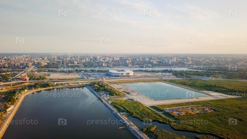 Панорама центральной части Ростова-на-Дону. Стадион, река Дон. Россия, Ростов-на-Дону