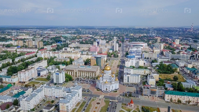 Собор святого благоверного воина Федора Ушакова. Саранск, Россия. Красивый панорамный вид на город
