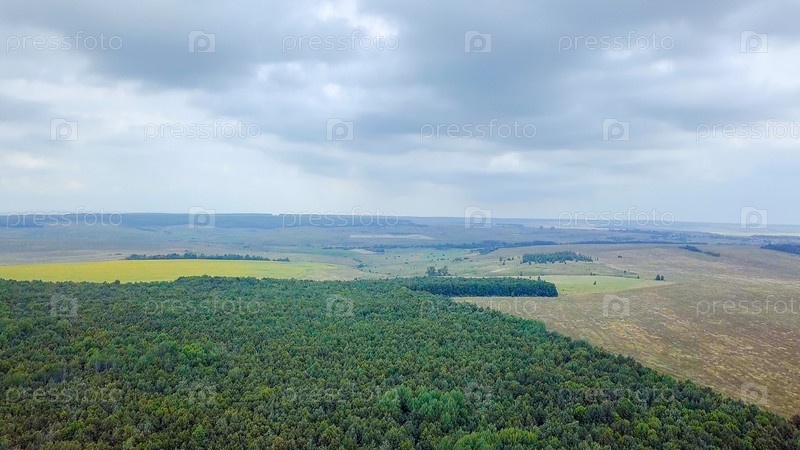 Граница леса. Панорама рощи и полей. Россия