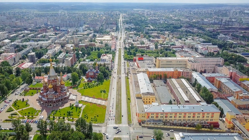 Собор Святого Архангела Михаила. Ижевск, Россия. Панорама города, вид на улицу Карла Маркса
