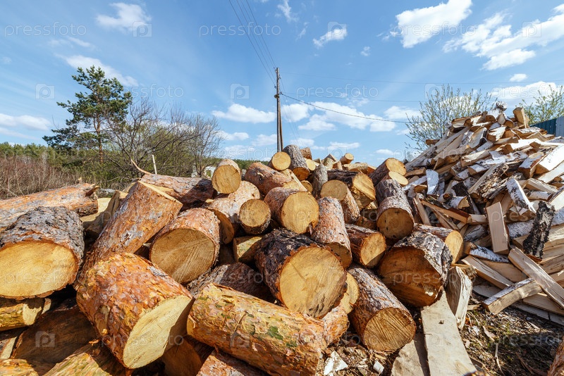 Куча круглых сосновых бревен