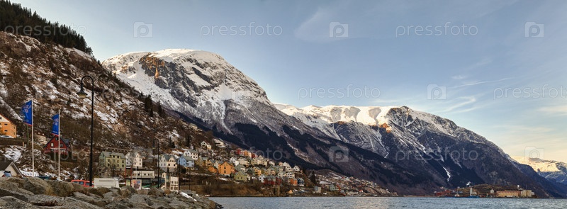 Панорама набережной, дом у фьорда. Одда, Норвегия