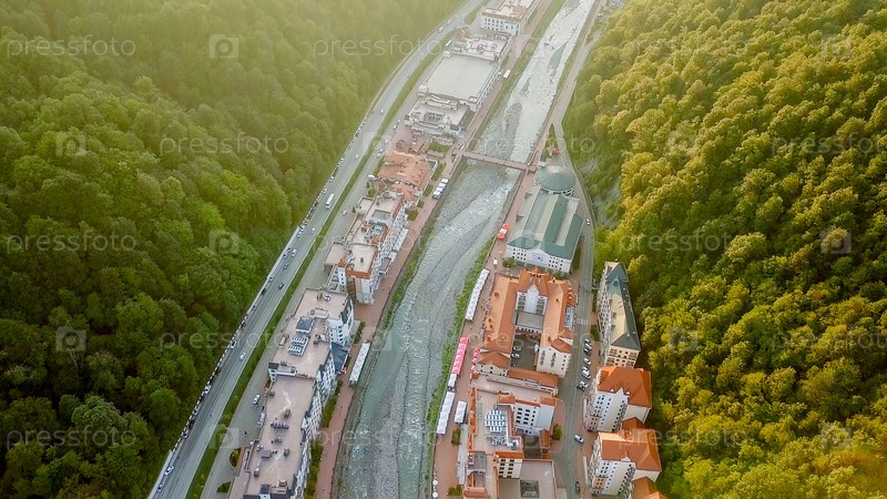 Вид с воздуха. Роза Хутор, Красная Поляна. Сочи, Россия